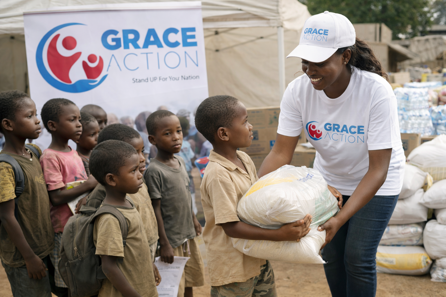 Grâce et Action accompagne les orphelins et enfants en situation de précarité en leur apportant un soutien matériel, éducatif et social.